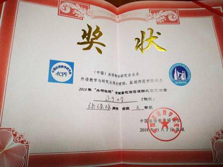本次比赛前期通过全国预赛,组委会从全国各地高校法语专业推荐的近100名选手中遴选出11名参与决赛的最终角逐。决赛分为命题演讲和即兴演讲两部分,命题演讲题目为“当今时代,大学生应当具备的素养”,即兴演讲为当场抽题并发表演说。我院法语系2015级学生张瑶瑶发挥稳定,荣获大赛三等奖。