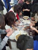 联欢活动在激烈的“包饺子,鼓干劲,庆团圆”比赛中拉开序幕。6个工会小组的老师与学院领导一起,和面、拌馅、擀皮,包团圆饺子,共同迎接新春佳节的到来。团圆饺子包出浓浓的同事情谊,热腾腾的饺子汤呈现了万象城awc官网登录入口新一年年的拼搏热情。