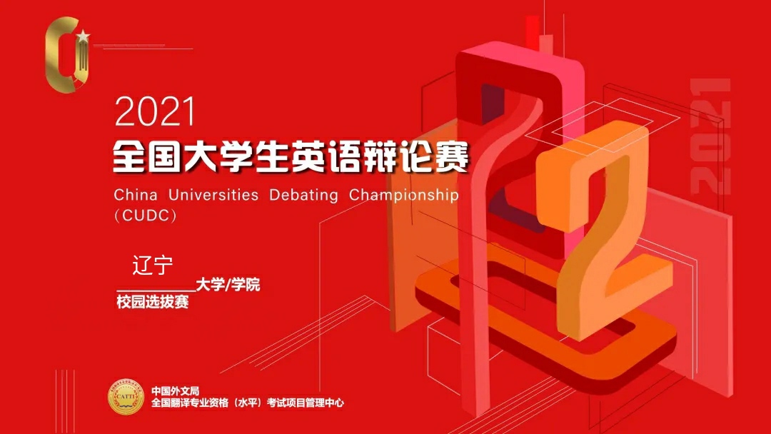 2021全国大学生英语辩论赛 (China Universities Debating Championship, CUDC)由中国外文局全国翻译专业资格(水平)考试项目管理中心主办,全国翻译专业学位研究生 (MTI)教育指导委员会担任指导单位。该赛事旨在通过引导学生对国际热点和多元文化进行讨论,塑造能引领新时代发展的国际化人才。