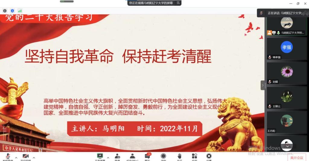 11月23日下午,学院党委书记马明阳以“坚持自我革命,保持赶考清醒”为题,从党的二十大报告主题、过去5年的工作和新时代10年的伟大变革、三个务必、坚定不移全面从严治党、始终保持赶考的清醒等五个方面作了全面宣讲和深入阐释。 马明阳书记指出, 党员干部特别是领导干部必须把始终保持“赶考”的清醒作为加强党性锻炼、不忘初心、砥砺前行的内在要求和重要课题,以“赶考”的心态警醒自己、鞭策自己,确保在经受各种考验中交出合格答卷。他强调,全体师生要把学习宣传贯彻党的二十大精神作为当前和今后一个时期的首要政治任务,要原原本本学,理解原汁原味的会议精神,要结合实际学,理解会议精神内涵,把握会议精准外延,推动党的二十大精神落实落地、入脑入心。