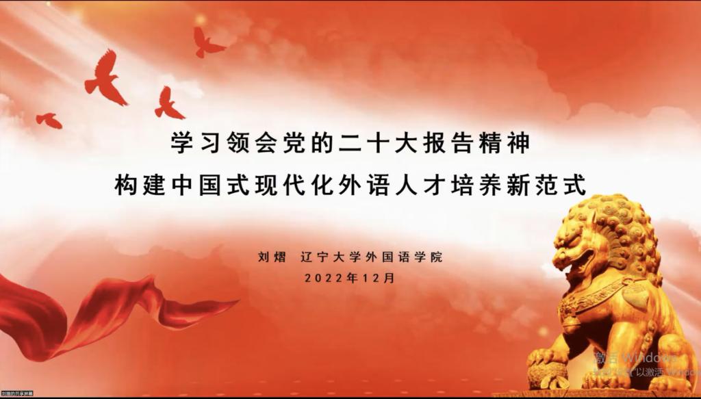 12月30日下午,学院院长兼党委副书记刘熠以“学习领会党的二十大精神 构建中国式现代化外语人才培养新范式”为题,对党的二十大报告中与外国语言文学学科相关的关键词进行了梳理,提出了中国式现代化背景下学科发展的重点方向,然后从外语教育中的课程思政、国际传播能力培养、全球胜任力学生培养、外语教育中的文化安全意识、外语教材中的价值观研究、区域国别人才培养与研究等六个方面进行了详细解读。她指出,举世瞩目的中国共产党第二十次全国代表大会擘画新时代中国特色社会主义的宏伟蓝图,提出以中国式现代化全面推进中华民族伟大复兴的一系列新理念、新思想、新战略、新举措,为党和国家的教育事业提供了根本遵循和行动指南。她强调,外国语言文学学科要深入学习贯彻党的二十大报告中的新思想、新观点、新论断,准确把握新时代新征程对外语学科提出的新使命、新任务,秉承为党育人、为国育才的初心,准确识变、科学应变、主动求变,积极打造具有中国特色的世界一流外语学科,推动教育高质量发展、培养新时代拔尖卓越人才。